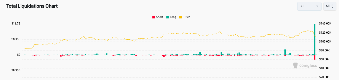 “Il totale effettivo è probabilmente molto più alto. Binance segnala solo un ordine di liquidazione al secondo”, ha detto CoinGlass su X riguardo ai numeri.